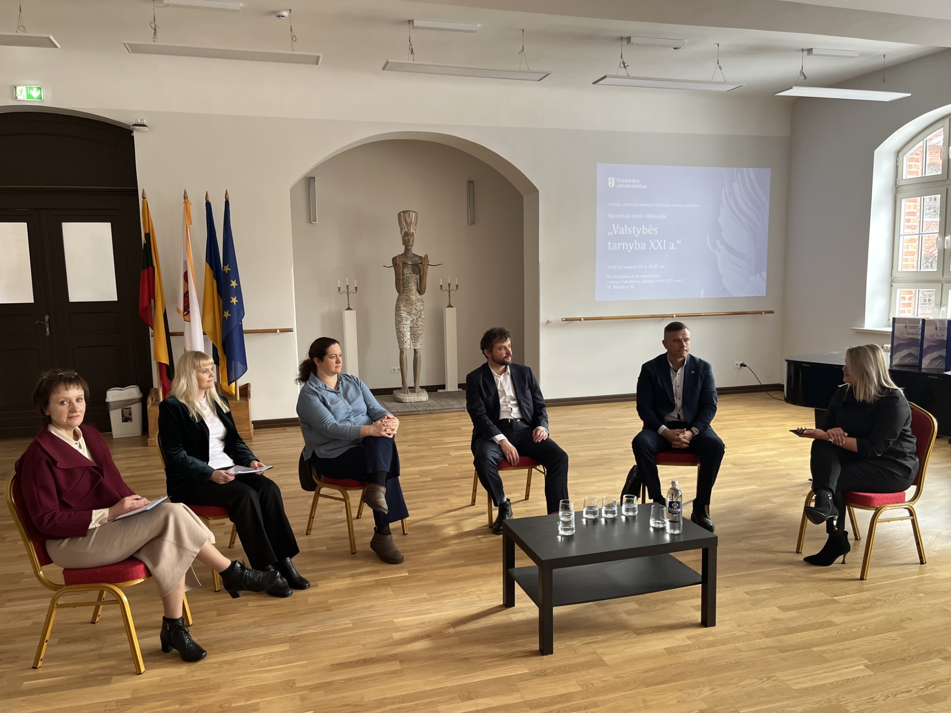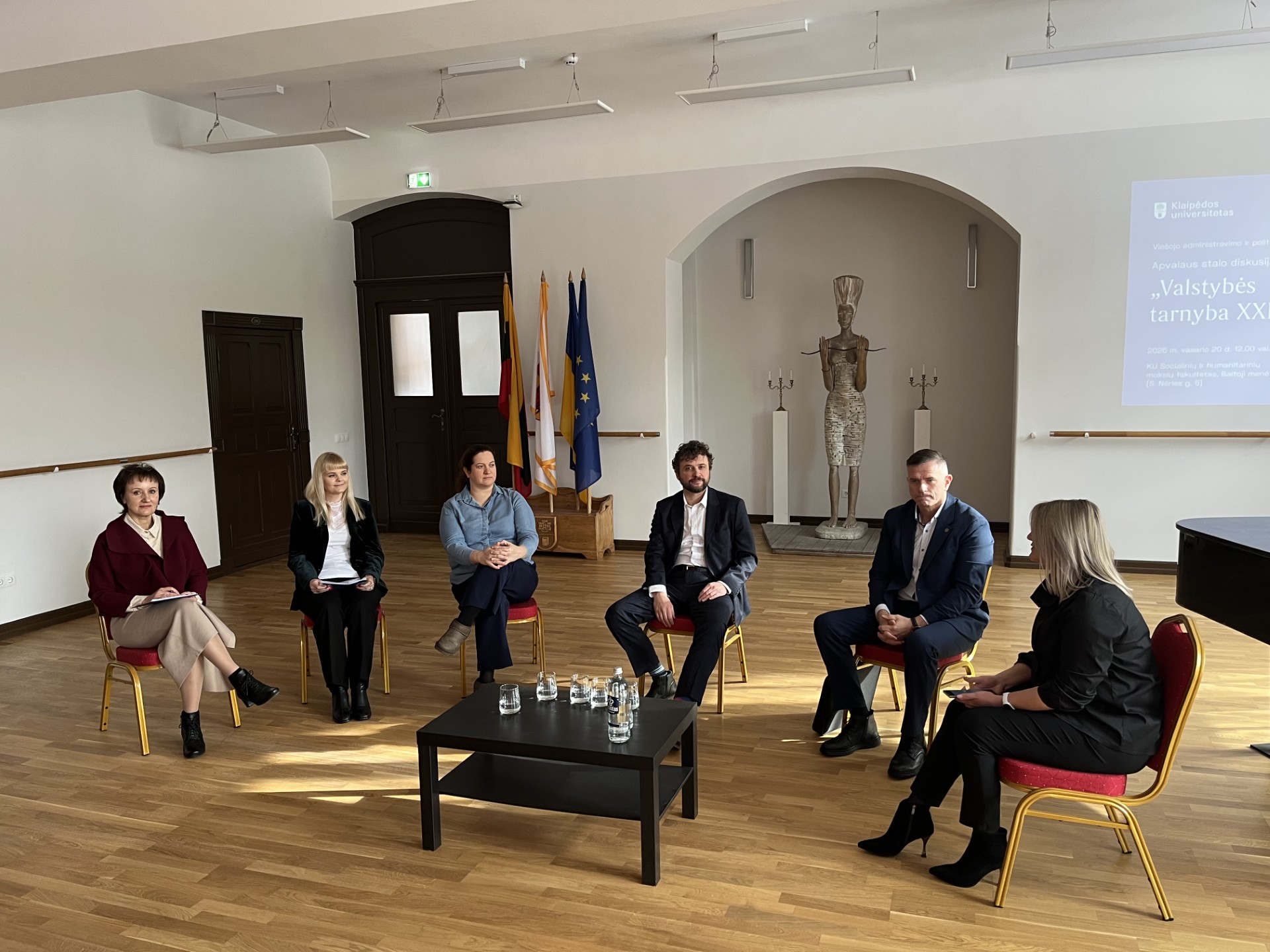 Diskusijoje dalyvavo atstovai iš skirtingų valstybės organizacijų: LR Vidaus reikalų ministerijos Valstybės tarnybos politikos grupės vadovas Audrius Kasinskas, Klaipėdos apskrities VMI Administravimo ir personalo skyriaus vadovė Daiva Karbauskienė, Klaipėdos rajono savivaldybės administracijos direktoriaus pavaduotojas Edgaras Kuturys, Klaipėdos miesto savivaldybės administracijos Teisės ir personalo skyriaus vyriausioji specialistė Edita Dimšienė bei Strateginio planavimo skyriaus vedėja Indrė Butenienė. Renginį moderavo KU Viešojo administravimo ir politikos mokslų dėstytoja dr. Simona Statneckytė.
