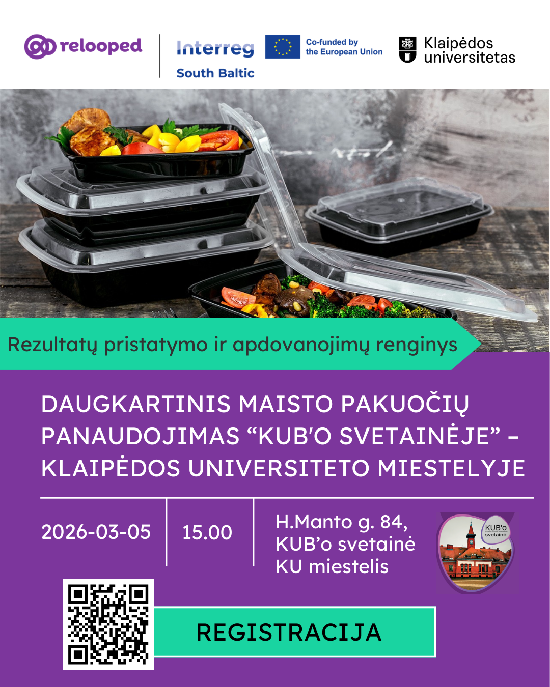 Klaipėdos universiteto miestelyje 2025 m. vasario mėn. prasidėjo bandomoji iniciatyva, tapusi praktiniu žingsniu tvaresnės ateities link. Universiteto valgykloje „KUB’o svetainė“ buvo įkurta nedidelė gyvoji laboratorija (finansuojama projekto "Retail ReLooped" lėšomis: www.relooped.eu) kurios pagrindinis tikslas – mažinti vienkartinių maisto pakuočių atliekų kiekį ir skatinti atsakingesnį išteklių naudojimą kasdienėje veikloje.