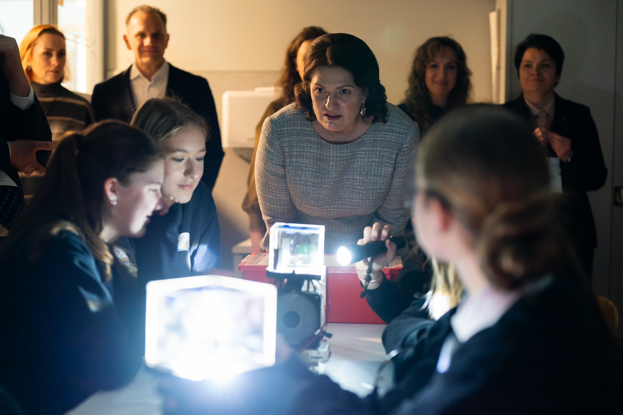 Vizito metu šalies pirmoji ponia D. Nausėdienė išreiškė norą apsilankyti KU metodiniame STEAM centre. Čia susipažino su centre vykdomomis pamokomis, projektais, mentorystės programomis ir mokinių ugdymui skirtomis moderniomis erdvėmis, kuriose mokiniai ir mokytojai turi galimybę atlikti praktinius eksperimentus, tyrimus bei susipažinti su šiuolaikinėmis technologijomis. Centro komanda supažindino su STEAM ugdymo principais, skatinančiais jaunimą domėtis mokslu, technologijomis, inžinerija, menu ir matematika, ugdyti kūrybiškumą, kritinį mąstymą bei praktinius problemų sprendimo įgūdžius. Taip pat akcentuota, kad šis centras yra svarbi regiono švietimo infrastruktūros dalis, suteikianti galimybes visos Lietuvos mokiniams įsitraukti į pažangias mokslo ir inovacijų veiklas. „Dėkoju jums už pastangas įkvėpti jaunimą domėtis mokslu, skatinti jų smalsumą ir susidomėjimą inžinerijos bei gamtos mokslais. Tai didžiulis ir labai prasmingas indėlis ugdant jaunuosius protus“, – dėkojo pirmoji šalies ponia D. Nausėdienė.